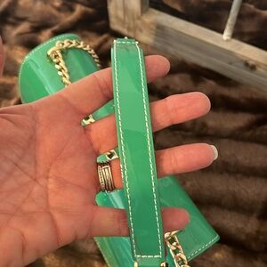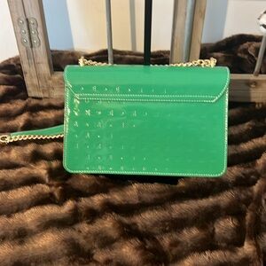 This genuine patent leather bag is green