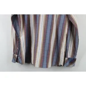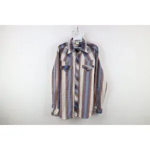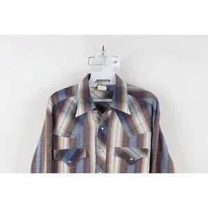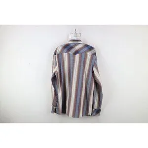 Vintage 70s Streetwear Mens Large Rainbow Striped Western Snap Button Shirt