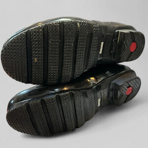 I barely wore these, they still have the box which shows some tearing. Gloss black with the buckles, they run true to size women’s 8 with regular socks on. Any questions just message me!