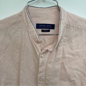 Men’s Zara short sleeve button up linen blend medium lightweight shirt pink