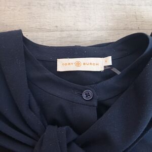 Tory Burch Womens Sz 4 Sleeveless Tunic Button Up Top Navy Blue
