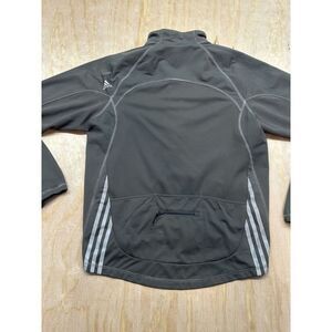 This Adidas men's cycling jacket is the perfect addition to any rider's wardrobe. The jacket features a zip-up design, windstopper technology, and multiple pockets for storage. The outer shell is made of durable polyester material and comes in a stylish gray color.