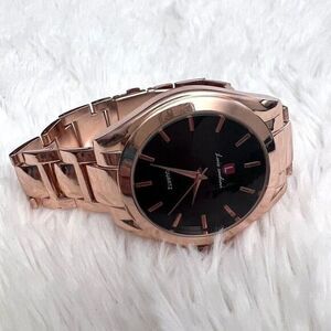 Luis Cardini, rose gold watch, quartz watch, stainless steel, black dial, water resistant, elegant timepiece, formal watch, everyday watch, minimalist design