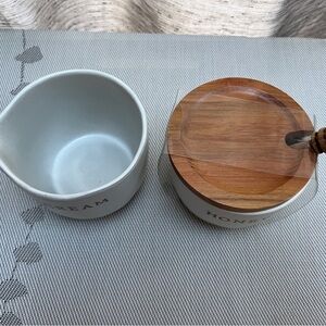 Hearth & Hand Honey Pot with Wood Lid & Dipper & Creamer Set