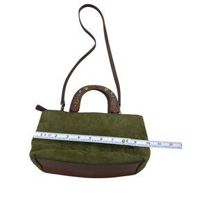 Relic Green Suede Brown Leather Floral Handle Crossbody Bag SKU 7056
