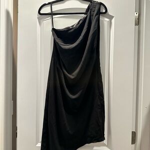 Step out in style with this elegant black one-shoulder dress. Perfect for any occasion, worn once great condition!