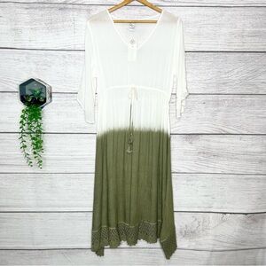 NWT Boho Chic White & Olive Green Maxi Dress Size Medium