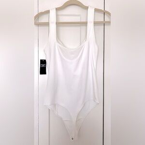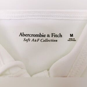 Here we have a NWT white sleeveless bodysuit from Abercrombie’s Soft A&F line. Featuring a corset seam detail, a lace-up bust, and a snap-button crotch for easy on and off. It has been hanging in my closet for quite some time, and I realized if I haven’t worn it by now I probably won’t ever. This versatile staple piece is perfect for the summer, on its own, or worn under a blazer, cardigan, or whatever you like. This medium can also fit a size large/larger bust, owing to the 12% elastane and the fact that Abercrombie pieces tend to be roomier/have stretch to them.