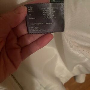 Small blemish on left front pocket(barely noticeable) small blemish on inside collar. Slight pilling on inside. See photos very minor great condition