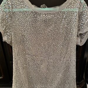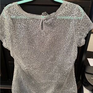 I-N-K INTERNATIONAL CONCEPTS WOMENS SEQUINED MESH BLOUSE. LIKE NEW.