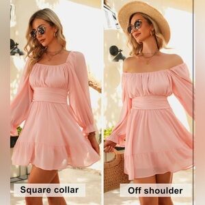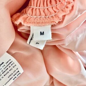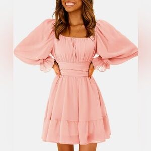 Exlura Peach-Pink Long Lantern Sleeve Ruffle Tie-Back Mini Dress size Medium