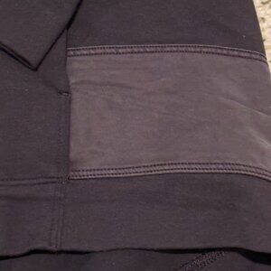 Cozy Lululemon pullover hoodie with long sleeves, lower back (to cover the bum) in their soft, signature stretchy viscose fabric. Lightweight and a tone-on-tone microfiber stripe that goes around the bottom hemline.
