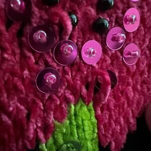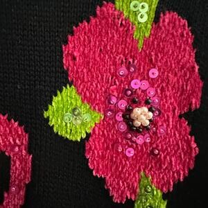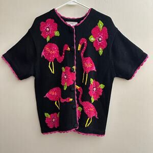 Lisa International Flamingo Beaded Sequin Cardigan Sweater Short Sleeve MEDIUM