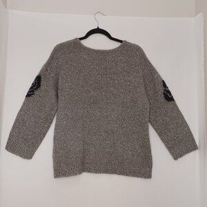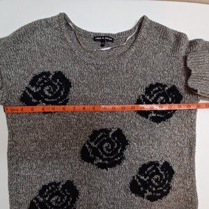 Cable & Gauge Gray Sweater with Black Roses Size Large