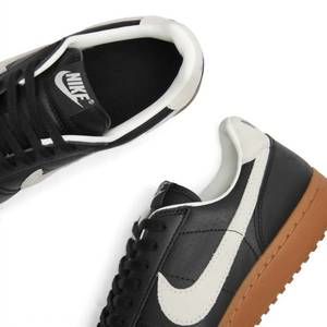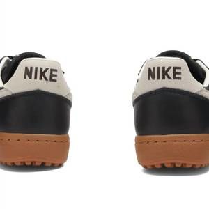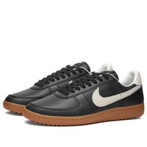 - Description: Reintroducing the Men's Field General '82 Sneaker by NIKE, a stylish revival of vintage gridiron aesthetics. This sneaker combines smooth leather, synthetic leather, and durable textiles with a classic color scheme of Black/Sail-Gum Medium Brown. It rests on a black rubber Waffle sole, harkening back to its legendary '80s roots on the field. Additional features include a foam midsole and rubber outsole, showcasing the brand's commitment to comfort and durability.