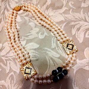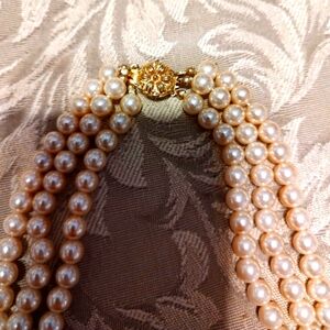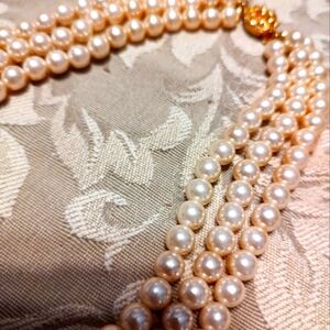▪️Beautiful Cascade of Layered Triple Strand Pearls
