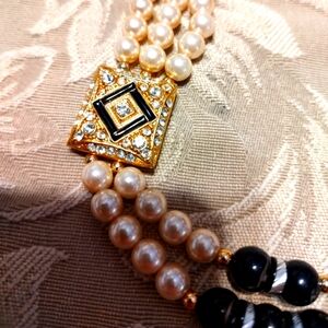 🌹 Magnificent Vintage Elaborate Cream Pearl & Rhinestone Gold Statement Neckla
