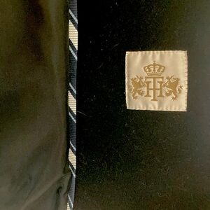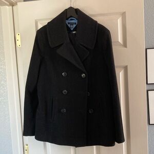 TOMMY HILFIGER peacoat; black wool; like new; blue satin lining details