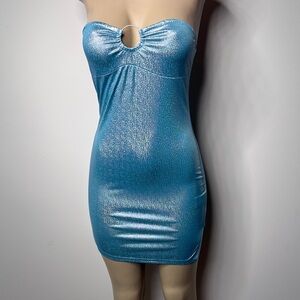 Club Exx blue and iridescent silver overall rubber dress with butterfly detail