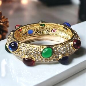 Ultra Luxurious! High-end Quality! Chunky Mogul Jeweled Clamper Bracelet with Beautiful Glass Mogul Cabochons and Sparkling Pave Zircon Crystals. Hinged clamper style. Very David Webbish without the high price. New