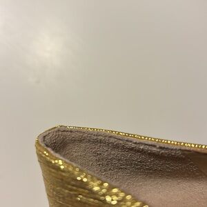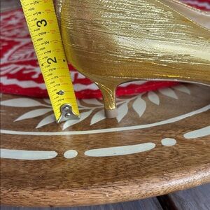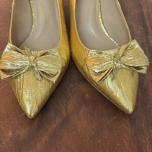 Talbots yellow “crushed” gold shiny BOW kitten Heels size 8