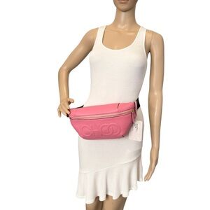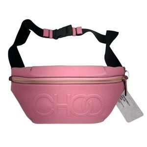 Jimmy Choo New In Box “CHOO” Bumbag Peony Pink Grained Leather Large Bel…