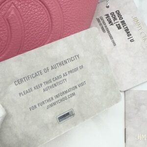 • Peony pink durable grained leather with “CHOO” logo embossed