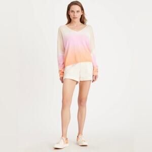SANCTUARY | Women’s Horizon Sweater Pink Sherbet Ombre Cotton Blend V-Neck Small