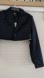 Blue/black blazer. Single button closure, blue with pinstripe front, black back with elastic waist. Fully lined.