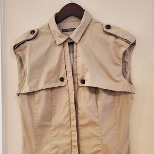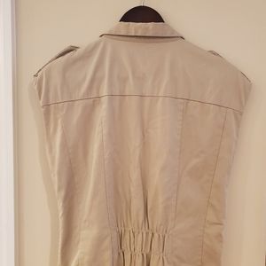 Zara Trench Coat Style Sleeveless Button Up Shirt Dress Khaki Size Large