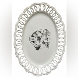 Large White 16” Decorative Dachshund Platter New