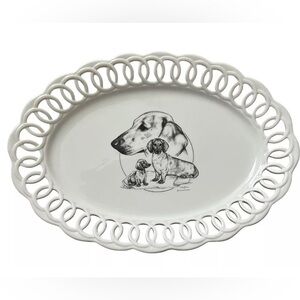 Large 16” x 10” white decorative dachshund Platter