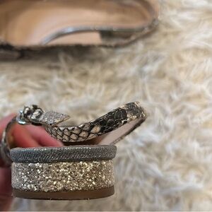 Jcrew! Suede black cap toe sling flats with holiday gold and silver sparkle heel. Size 7. Leather. Perfect for any occasion.