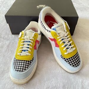 Elevate your style. Corduroy, neoprene, suede and houndstooth-printed leather come together to create a unnique and multi-dimensional take on the AF1 Shadow.