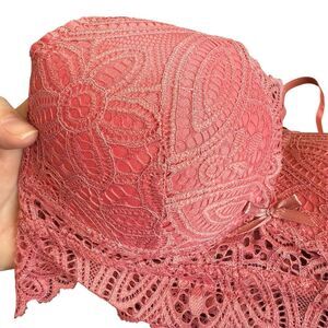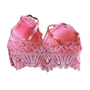 Fredericks Hollywood Lace Bralette Small Pink Finley Wireless Scallop Padded NWT