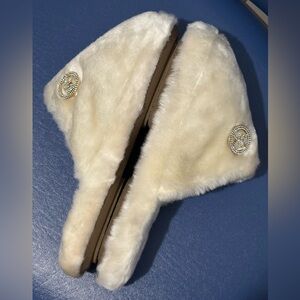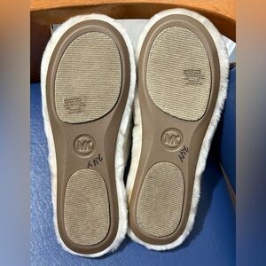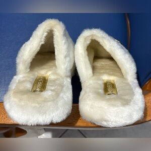 NWOT Michael Kors women's ivory/gold faux fur acrylic closed toe bling slippers