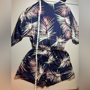 Veronica M Blue Floral Shorts Romper w/ Tie String V-neck Women’s Size Large