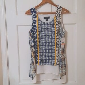 NWT ANTONIO MELANI BLUE BELTED ABYSS FLORAL/STRIPED ONE PIECE PULLON SWIMSUIT SZ LARGE. U - shaped frint neck with adjustable spaghetti straps. Protective seat liner in place. Belted waist with hoops/gold metal clasp buckle as accent. Bra pads inserted with support elastic band. Lined.