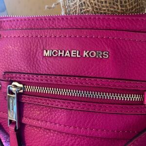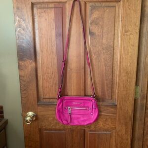Michael Kors, HOT PINK, soft pebble leather crossbody. Zip pocket on front.