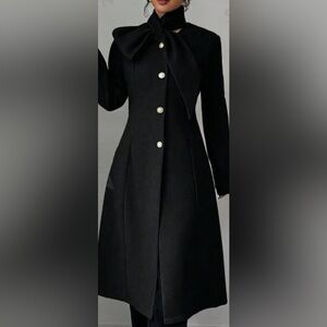 Classic Tan Tie Neck Button Pockets Coat Jacket