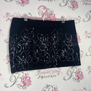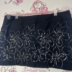 Hollister skirt tropical flowers sequin embroidered sparkly shiny black floral