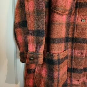 Lee colorful plaid coat with lining. Pit to pit is 23, arm length is 16 and length is 38