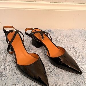Step out in style with these sleek black patent leather block heel shoes. Perfect for any occasion, they offer both elegance and comfort.