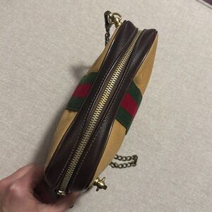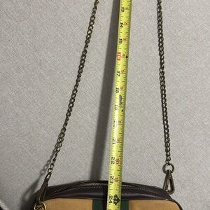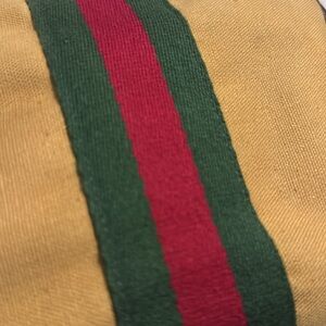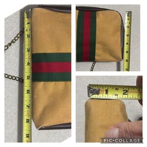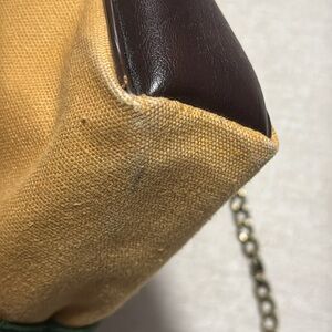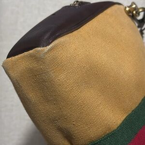 Converted Vintage Pouch-Tan Canvas-Red & Green Stripe Detail-Brassy Link Chain