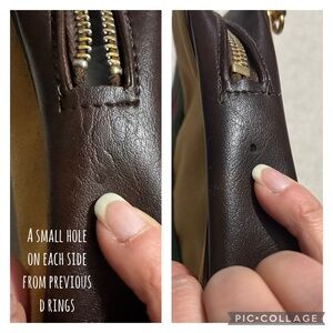 Note - previous d rings were attached on sides of brown trim-some small holes were left after relocating d rings to front face