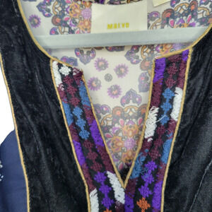 Anthropologie Maeve Quartier Latin Embroidered Patchwork Velvet Chiffon Dress Small Petite