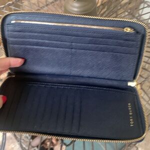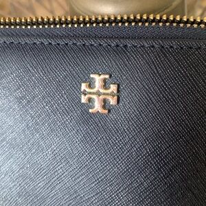 Tory Burch Wristlet Wallet Saffiano Leather Navy Gold zipper Fits Cell phone