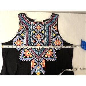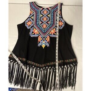 Savannah Jane Women's Size Medium Black Tank Aztec Print Fringe
