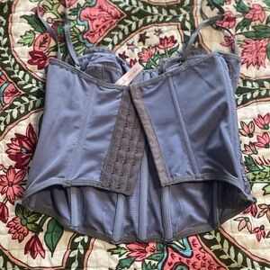 ~the~ urban corset top. size med. fits me as a size 34D although the cups are tiny. adjustable straps. no flaws, just not my style anymore. pet friendly smoke free home :)