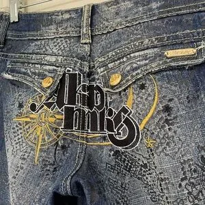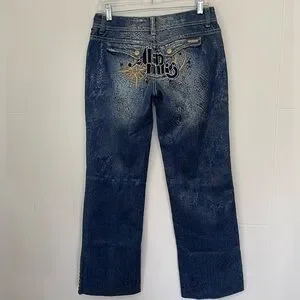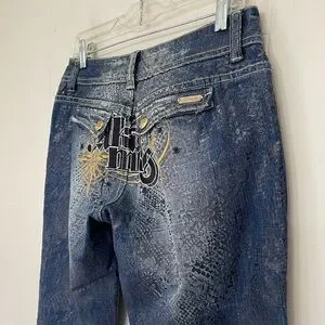 Akademiks Low Rise Boot Cut Jeans Embellished Lace Flap Pocket Women’s Size 28
